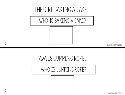 I have the questions isolated into who, what, where, when, and why and the kids LOVE them. I also have two levels in order to help the students who are not readers accomplish the task (with pictures) and the students who are readers accomplish the task (with words).